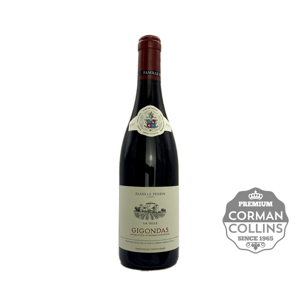 Le Gigondas la Gille de la Famille Perrin provient d'un assemblage de grenache et de syrah plantées sur des sols très sableux sur des terroirs de calcaires et de marnes.