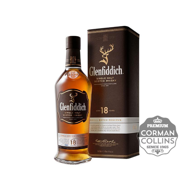 Ce whisky écossais single malt de 18 ans de la gamme principale de Glenfiddich a été élevé dans un mélange de fûts de sherry Oloroso et de bourbon.