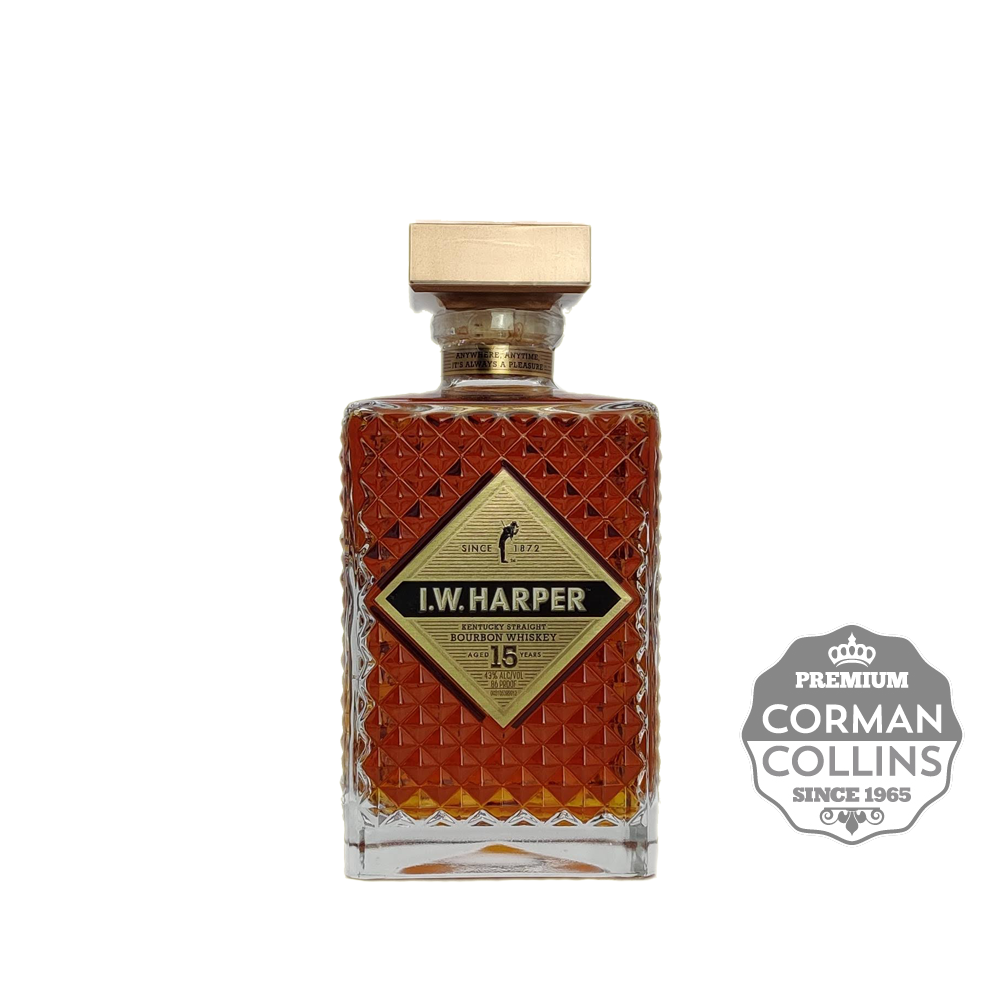 I.W. Harper est un Bourbon produit par la distillerie New Bernheim composé de maïs (environ 80%), de Seigle et d’orge maltée. Cette édition a vieilli 15 ans en fûts de chêne américain neufs, dans les entrepôts de la distillerie Stitzel-Weller, avant d’être embouteillée à Tullahoma dans le Tennessee. Bien équilibré, il développe des arômes fruités, avec des notes de menthe et de chocolat.
