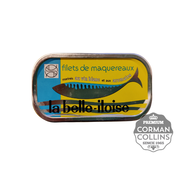 Travaillé à la main selon la méthode artisanale chère à la belle-iloise, le maquereau est préparé frais, cuit au court-bouillon, mis en boîte à la main puis recouvert d’une marinade au vin blanc et aux 9 aromates.